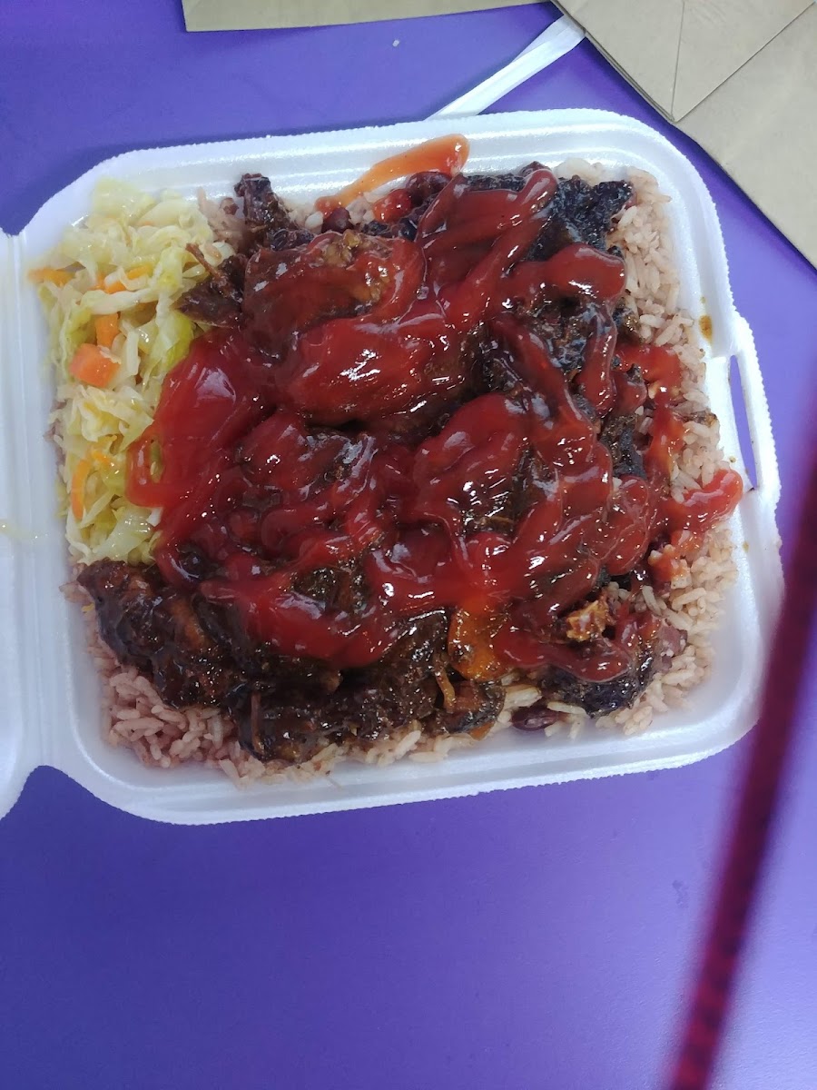 The ambient hum is punctuated by the aromas that rise from the kitchen — a fragrant invitation that begins long before your order arrives. The essence of well-loved Jamaican flavors fills the air, promising comfort and hearty satisfaction. Whether it’s the rich, slow-cooked brown stew beef or the charm of a freshly baked pizza, each plate carries a warmth that feels personal and rooted in tradition.
